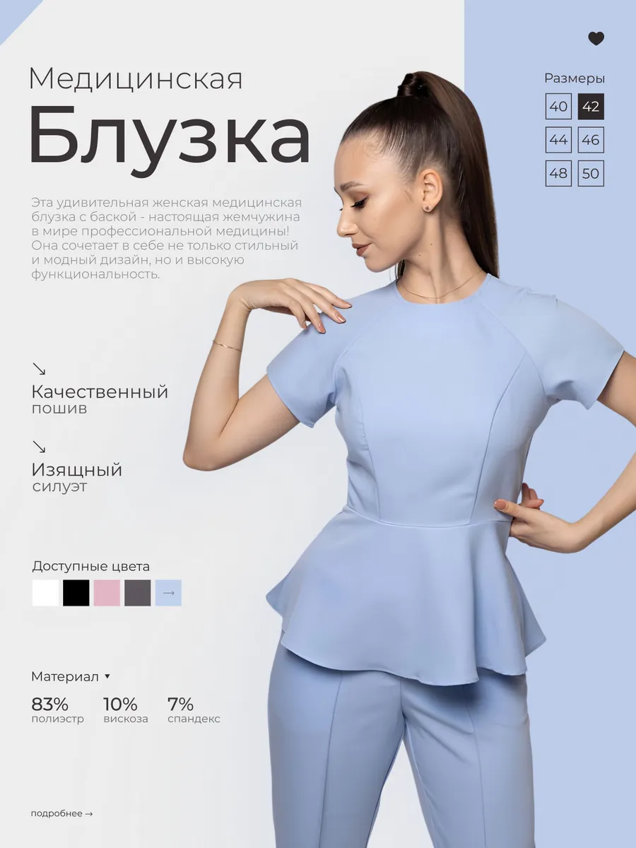 Представляем вам элегантную блузку с баской – идеальное решение для тех, кто хочет выглядеть стильно и профессионально каждый день. Эта модель создана для работы в сферах, где важен безупречный внешний вид: салоны красоты, спа-центры, гостиницы, частные клиники, лаборатории…