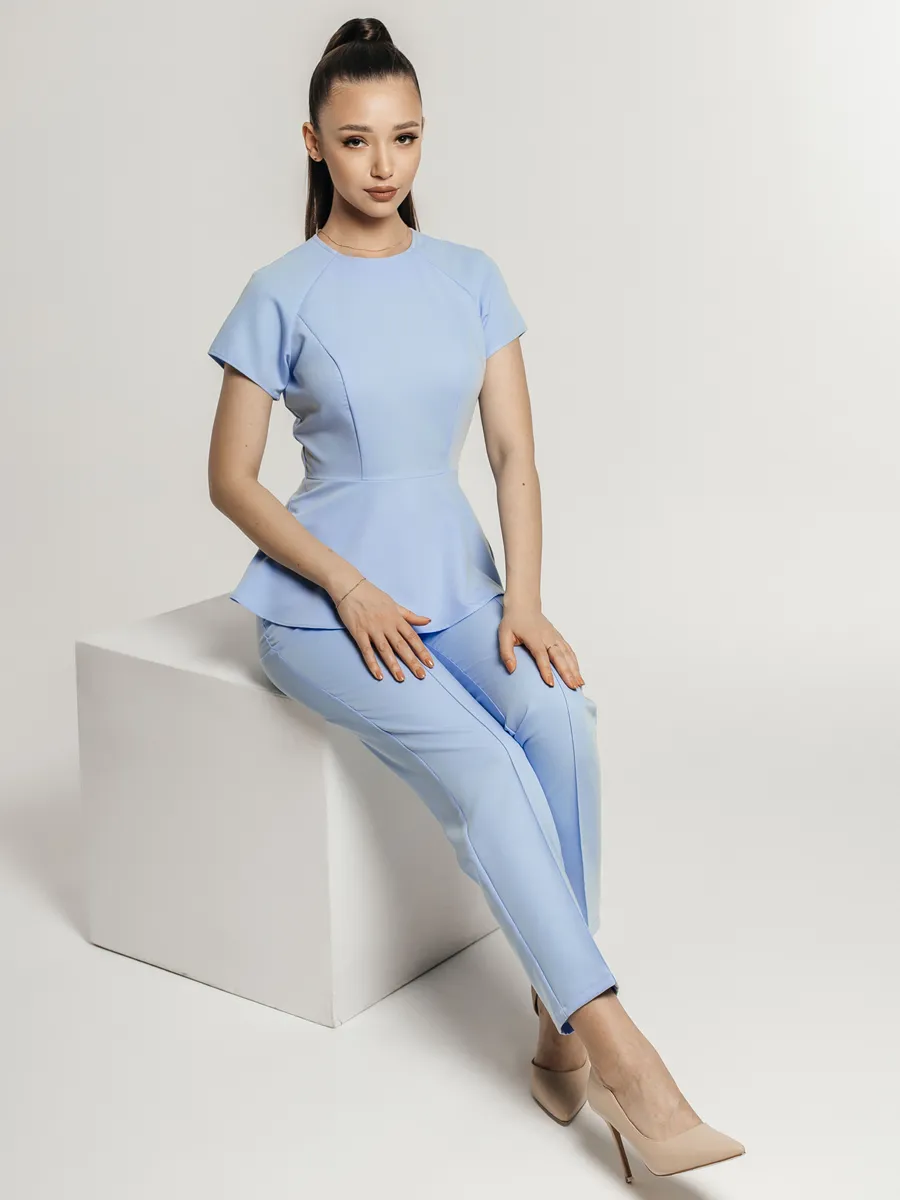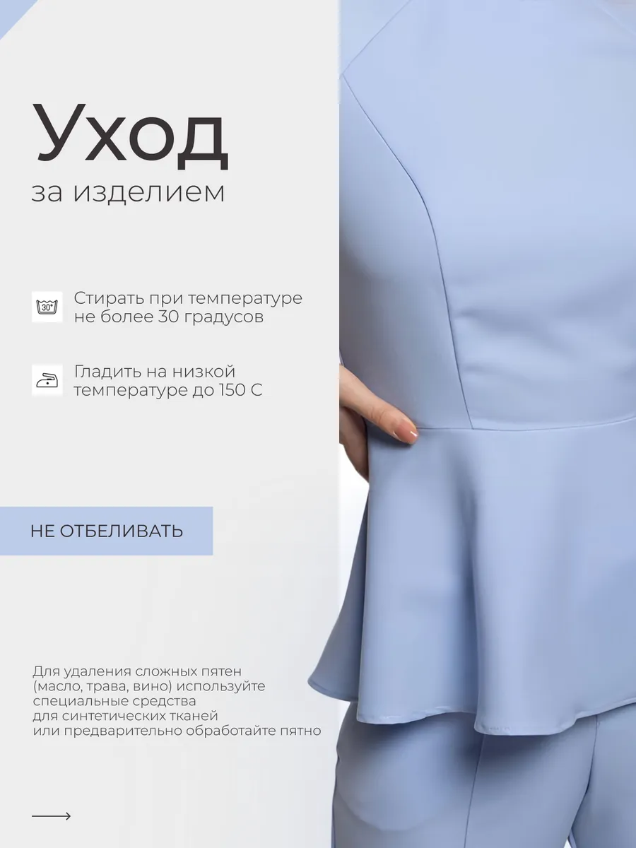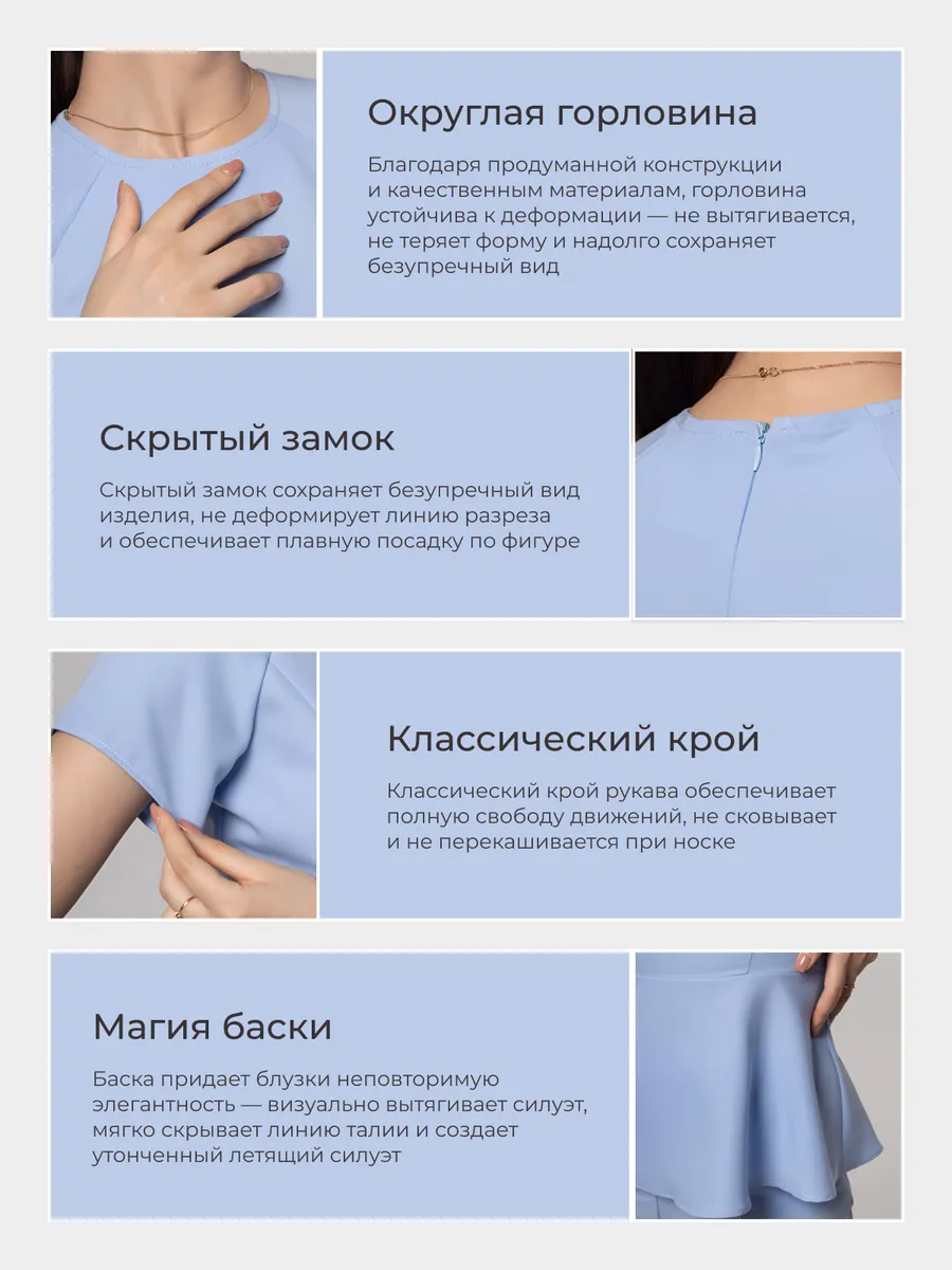 Идеальный крой: Элегантная баска мягко подчеркивает линию талии, создавая женственный и изящный силуэт. Вы будете чувствовать себя уверенно и комфортно.
