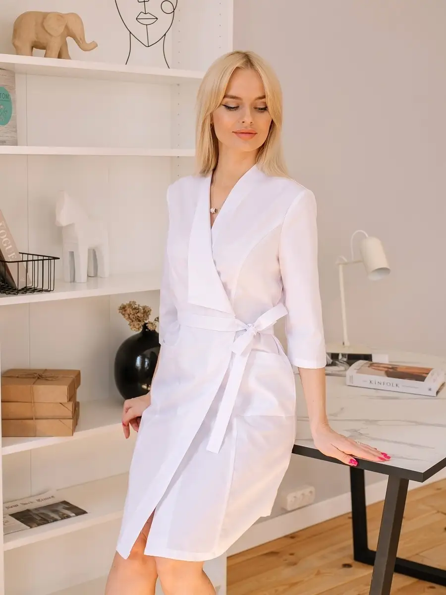 Халат медицинский с запахом - это идеальное сочетание комфорта и функциональности. С первого взгляда вы обратите внимание на его стильный дизайн с ассиметричным воротником, который добавляет особую изюминку и неповторимость. Но этот халат не только красив, но и практичен.