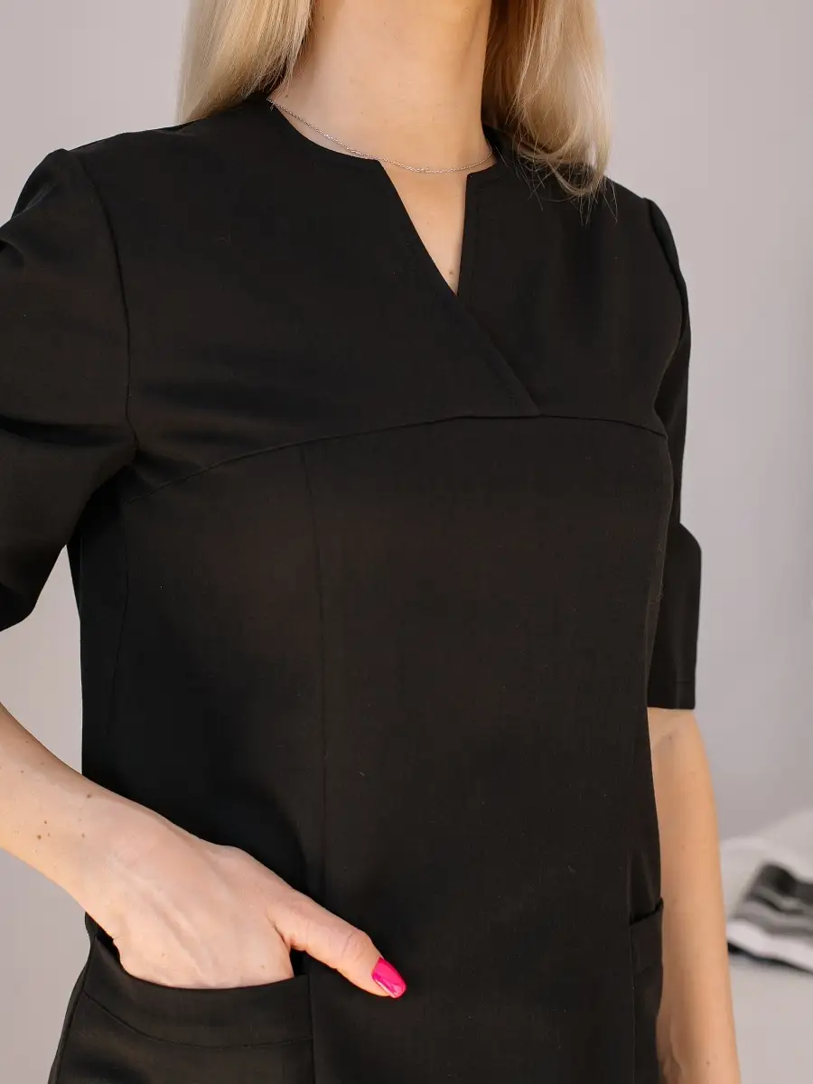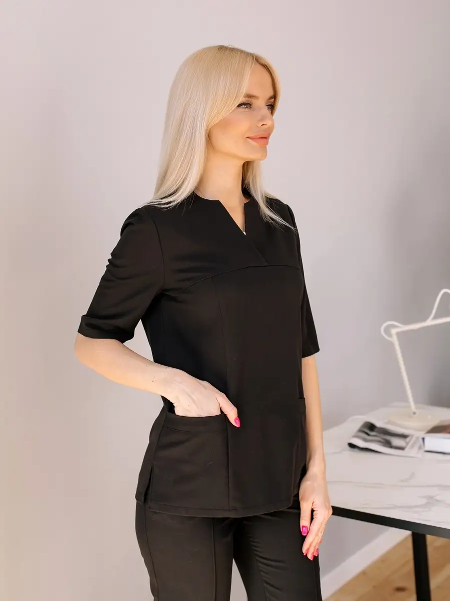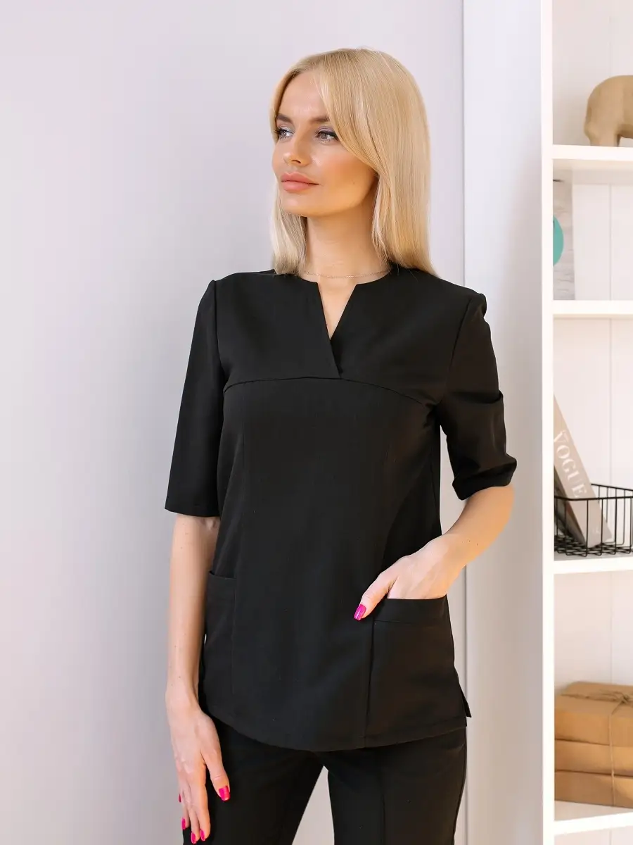Благородная и стильная, рубашка стрейч с рукавом 3/4 – идеальный выбор для частных клиник, салонов красоты, спа-центров, массажистов! Произведена с использованием только самых качественных материалов, она сочетает в себе практичность и элегантность.