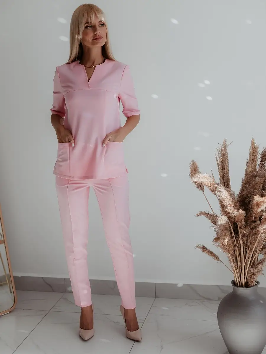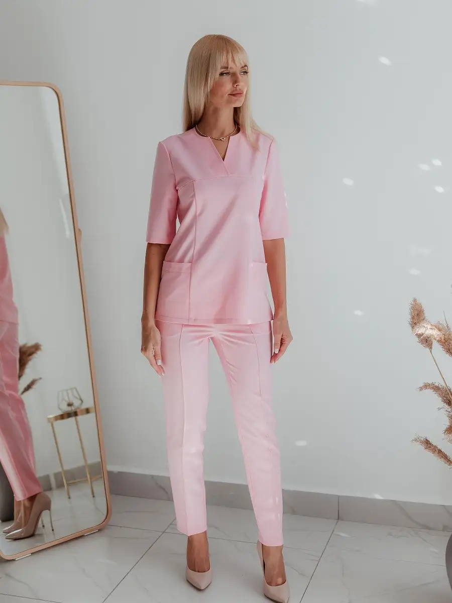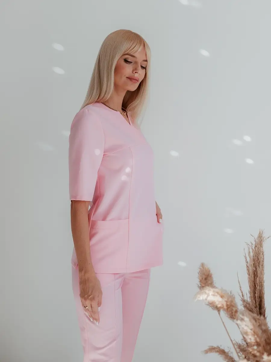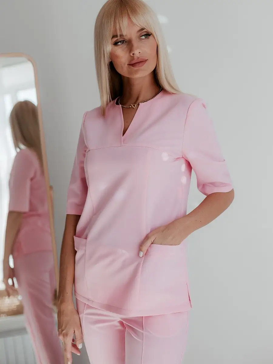 Благородная и стильная, рубашка стрейч с рукавом 3/4 – идеальный выбор для частных клиник, салонов красоты, спа-центров, массажистов! Произведена с использованием только самых качественных материалов, она сочетает в себе практичность и элегантность.